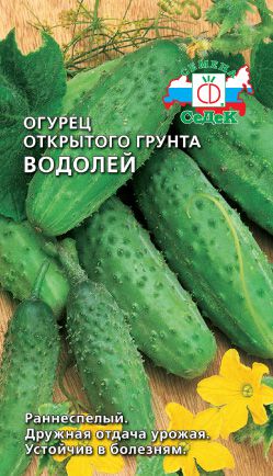 Огурец Водолей – раннеспелый‚ пчелоопыляемый сорт‚ предназначенный для открытого грунта. Период от всходов до первого сбора составляет 45-50 дней. Растение характеризуется среднеплетистым типом роста. Плоды удлиненно-овальной формы‚ длиной 12-14 см‚ массой 108-121 г. Поверхность плода бугорчатая‚ кожура ярко-зеленого цвета. Мякоть сочная‚ белого или слегка зеленоватого оттенка‚ без горечи. Сорт отличается дружной отдачей урожая и высокими вкусовыми качествами‚ универсального назначения‚ подходит для засолки.
