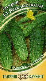 Гибрид огурцов Веселые нотки F1 представляет собой скороспелый (45-48 дней от всходов до плодоношения) пчелоопыляемый сорт преимущественно женского типа цветения. Предназначен для выращивания в открытом грунте. Растение формирует зеленые, крепкие, хрустящие плоды массой 70-95 г и длиной 7,5-9,5 см. Отмечается превосходный вкус без горечи. Плоды универсальны в применении. подходят для употребления в свежем виде, а также для консервирования (соления и маринования). Семена проходят предварительную обработку производителем, что исключает необходимость дополнительной подготовки перед посадкой огородником. Рекомендуется замачивание семян в стимуляторах роста перед посевом для ускорения прорастания. Для получения равномерного урожая и формирования сильного растения необходимо удалять побеги, формирующиеся ниже 30 см от шпалерной проволоки. Прищипывание не требуется, так как гибрид вершкуется самостоятельно после второго листа.