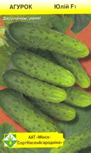 Огурец Юлий F1 . гибридный, партенокарпический сорт, предназначенный для выращивания в теплицах и открытом грунте. Растение индетерминантное, средневетвистое, с крупными, темно-зелеными листьями. Пчелоопыляемый сорт, но завязываемость плодов хорошая и без опыления. Зеленцы цилиндрической формы, длиной 10-12 см, массой 100-120 г. Кожица тонкая, темно-зеленая, с небольшими бугорками и белыми шипами. Мякоть сочная, хрустящая, без горечи. Вкусовые качества высокие. Сорт отличается высокой урожайностью, устойчивостью к заболеваниям и вредителям.Происхождение и распространение