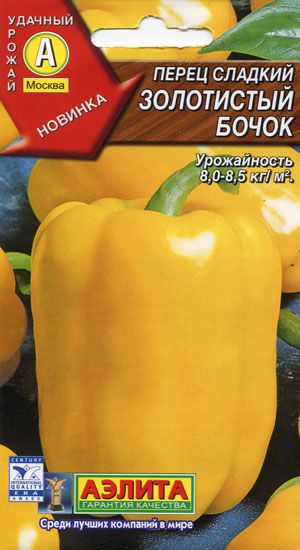 Сорт сладкого перца «Золотистый бочонок» характеризуется раннеспелостью и неприхотливостью в выращивании, демонстрируя высокую адаптивность как к открытому грунту, так и к условиям защищенного грунта. Растения полураскидистые, достигают высоты 45-75 сантиметров. Плоды обладают кубовидной формой, вырастают до 16 сантиметров в длину и отличаются толщиной стенки до 7 миллиметров. Средняя масса одного плода составляет до 270 грамм. Отличительной чертой сорта является насыщенно-желтая окраска зрелых плодов, сочетающаяся с великолепными вкусовыми качествами, что делает их пригодными для употребления в свежем виде, заморозки и консервации. Период от полных всходов до технической спелости составляет 110-120 дней. Сорт относится к среднеспелым, обеспечивая высокую урожайность. По отзывам садоводов, "Золотистый бочонок" . удачный выбор для получения обильного урожая вкусных и привлекательных плодов.