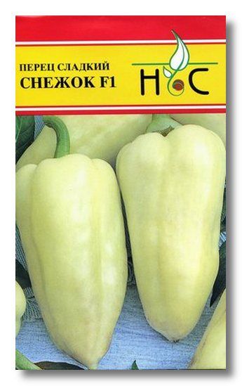 Перец Снежок F1 — это раннеспелый гибридный сорт, отличающийся высокой урожайностью и неприхотливостью в уходе. Растение индетерминантное, мощное, хорошо облиственное. Высота куста достигает 1,5 м. Плоды конусовидной формы, с гладкой поверхностью. Цвет плодов в технической спелости — кремово-белый, в биологической — красный. Толщина стенки — до 9 мм; Масса плодов — от 100 до 150 г. Вкус отличный, нежный, сладковатый. Сорт устойчив к основным заболеваниям перца.Общая характеристика перца Снежок F1