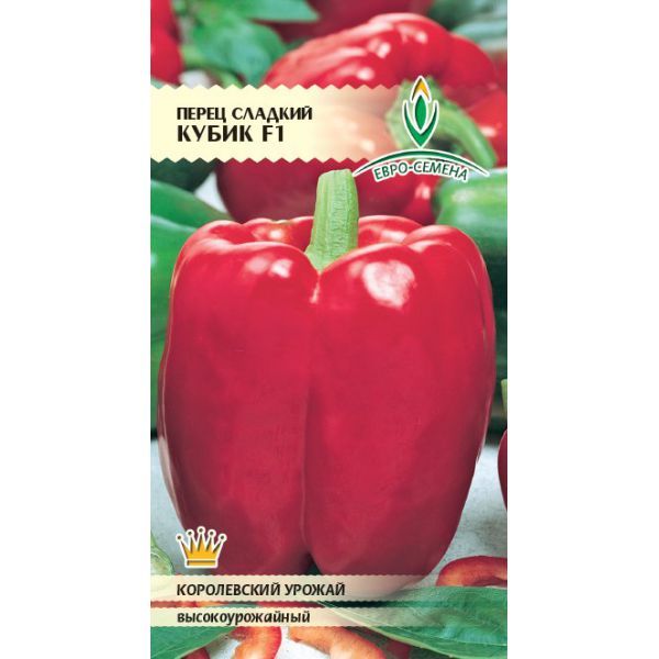 Гибрид перца Кубик F1 характеризуется среднеспелым или раннеспелым (в зависимости от конкретного подтипа, например, «Летний Куб F1») периодом вегетации. Растения мощные, раскидистые, с обильной листвой, высотой от 50 до 70 см (в зависимости от условий выращивания и подтипа). Отличается высокой урожайностью и устойчивостью к заболеваниям, таким как вертициллезное увядание и табачная мозаика. Плоды обладают кубовидной или призмовидной формой, гладкой или слегка ребристой поверхностью, глянцевым блеском. Средняя масса плодов составляет 150-200 г, толщина стенок достигает 7-9 мм. Окраска плодов в технической спелости зеленая, в биологической – ярко-красная. Мякоть сладкая, мясистая, обладает приятным ароматом. Рекомендуется для выращивания в открытом и защищенном грунте. Пригоден для употребления в свежем виде, кулинарной обработки и консервирования.