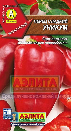 Сорт сладкого перца Уникум, включенный в Госреестр РФ, предназначен для культивирования в открытом грунте и под пленочными укрытиями. Отличается ранним сроком созревания (вегетационный период составляет 110 дней). Растение характеризуется полураскидистой структурой средней высоты. Плоды конусовидной формы, глянцевые, сочные и сладкие на вкус. В биологической спелости они приобретают темно-красный цвет, а в технической – светло-зеленый. Средняя масса одного плода достигает 150 г, толщина стенки – до 7 мм. Высокая урожайность. на одном кусте формируется 10-15 плодов. Уникум идеально подходит для употребления в свежем виде, а также для консервирования (соления и маринования).