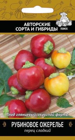 Характеристики сорта Сорт перца сладкого Рубиновое ожерелье предназначен для универсальных посадок. Сорт пластичный и хорошо приспособленный к жаре‚ внезапным похолоданиям. Возделывание проводится в теплично-парниковых сооружениях‚ в открытой почве. По типу роста перец полуштамбовый. Его кусты достигают 60-70 см‚ имеют полураскидистую крону. Побеги мощные‚ хорошо облиственные. По мере роста ведется формировка. Описание плодов Плод глянцевый‚ округлой формы. Масса плода 50-60 г. Толщина стенок 7‚5-8‚6 мм. Окраска в технической спелости желтая‚ в биологической . красная. Универсальное использование. Особенности выращивания Семена сеют в рыхлый субстрат с нейтральной рН‚ предварительно обеззараженный. Пикируют семена при отрастании 2-3 листиков. После процедуры для подкормки используют состав.- 1 г аммиачной селитры;