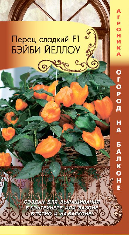 Гибрид сладкого перца Бэйби Йеллоу F1 – раннеспелый, высокоурожайный сорт, предназначенный для выращивания в ограниченном пространстве. контейнерах, горшках, подвесных кашпо. Растение компактное, высотой 35-50 см, формирует густую крону. Период вегетации составляет 75-80 дней от всходов до технической спелости. Плоды усеченно-конусовидной формы, массой 30-70 г, меняют окраску от зеленой до ярко-желтой по мере созревания. Мякоть характеризуется сочностью, ароматом и сладким вкусом. Рекомендуется для употребления в свежем виде и консервирования.