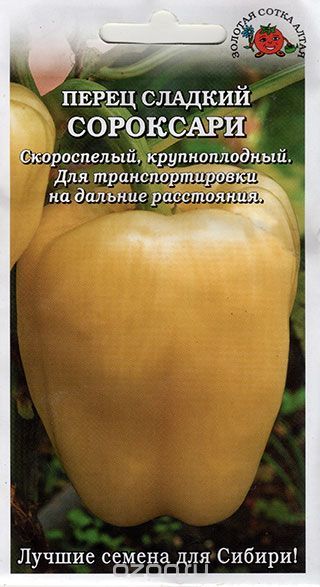Перец Сороксари . великолепный, скороспелый сорт итальянской селекции. Растение среднерослое. Плоды кубовидной формы, гладкие, крупные, массой 150-200 г, мясистые. Окраска в технической спелости цвета слоновой кости, в биологической оранжевая. Мякоть сочная, сладкая, ароматная и потрясающе вкусная. Толщина стенки до 10 мм. Сорт подходит для транспортировки на дальние расстояния, плоды долго сохраняют товарный вид.Характеристики сорта