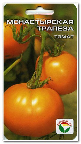 Сорт томатов «Монастырская трапеза» характеризуется среднеранним сроком созревания и детерминантным типом роста. Растения достигают высоты от 0‚7 до 1‚5 метров‚ в зависимости от условий выращивания. Плоды отличаются крупным размером‚ правильной круглой формой и плотной структурой. Отличительной особенностью является редкая апельсиново-оранжевая окраска зрелых томатов‚ в то время как незрелые плоды имеют светло-зеленый цвет. Средняя масса плодов составляет до 400 граммов. Вкус описывается как нежный‚ сладкий‚ с низким содержанием кислот‚ что делает их привлекательными для диетического питания. На одном растении формируется от 7 до 9 кистей с обильным количеством крупных плодов. Мякоть плодов нежная и плотная‚ скрытая под тонкой кожицей. Внешний вид томатов привлекателен‚ что делает сорт подходящим не только для употребления в свежем виде‚ но и для консервирования.