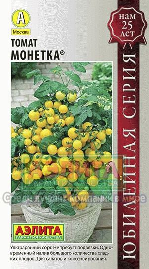 Томат Монетка – ультраранний сорт (85-90 дней от всходов до созревания), предназначенный для культивирования в открытом грунте и под пленочными укрытиями. Отличается детерминантным типом роста, штамбовой, низкорослой структурой, что позволяет выращивать его без подвязки. Сорт характеризуется дружным и ранним формированием плодов, обеспечивая сбор урожая до массового распространения фитофторы. Занесен в Госреестр в 2012 году, рекомендован для выращивания по всей территории России. Оригинатор – ООО Агрофирма АЭЛИТА. Информация о точном весе плодов варьируется в разных источниках, указывая на диапазон от 10 до 35 грамм. Плоды, как правило, округлые, хотя встречаются слегка удлиненные экземпляры. Распространены желтые и золотисто-оранжевые окрасы в стадии полной зрелости. Мякоть плодов сочная и мясистая, с небольшим количеством семян. Вкус описывается как сладкий, с приятной фруктовой кислинкой.
