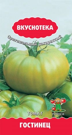 Томат Гостинец – среднеспелый сорт, отличающийся оригинальным вкусом и внешним видом плодов. Период вегетации составляет 110-115 дней от момента появления всходов до созревания. Растение высокорослое, индетерминантного типа, нуждается в обязательной подвязке и формировании куста, рекомендован для выращивания в пленочных теплицах. Плоды характеризуются округлой или слегка плоскоокруглой формой, слаборебристой поверхностью. В стадии технической зрелости томаты сохраняют зеленоватый оттенок, приобретая при полном созревании желтоватый оттенок. Мякоть плотная, сладкая, ароматная, отличается превосходным пикантным вкусом. Средняя масса плодов составляет 150-280 г, хотя встречаются экземпляры и до 300 г. Сорт относится к салатным, прекрасно подходит для употребления в свежем виде и консервирования. Томат Гостинец зарекомендовал себя как урожайный и вкусный сорт, популярный среди садоводов.