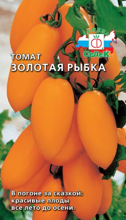 Сорт томатов «Золотая рыбка» характеризуется скороспелостью и предназначен для культивирования в открытом грунте. Растение высокорослое‚ достигает высоты 170-200 см‚ со стеблем средней толщины и листьями среднего размера. Плоды выравненные‚ цилиндрической формы с характерным носиком‚ ярко-желто-оранжевого цвета. Масса плодов варьируется от 80 до 120 г. Мякоть плотная‚ мясистая‚ с повышенным содержанием бета-каротина. Отмечается отличный кисло-сладкий вкус. Сорт демонстрирует высокую урожайность. Некоторые источники указывают на среднеспелый период созревания (110-120 дней)‚ другие – на среднеспелость.