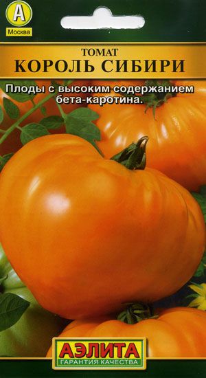 Томат «Король Сибири» представляет собой индетерминантный сорт с высокими кустами, достигающими 1,5-2 метров и более. Характеризуется мощными побегами и умеренным количеством темно-зеленых, густо опушенных листьев. Цветки простые, собраны в кисти по 8-10 штук. Сорт известен своими крупными плодами сердцевидной формы, массой от 300 до 900 грамм, окрашенными в желто-оранжевый цвет. Кожица плодов плотная. По отзывам, мякоть отличается сладким вкусом и высокой мясистостью. Сорт относится к среднеспелым, период от всходов до созревания составляет 110-115 дней. Выращивание возможно как в открытом грунте (в южных регионах), так и в теплицах, особенно в регионах с нестабильными погодными условиями. Требуется подвязка и формирование кустов.