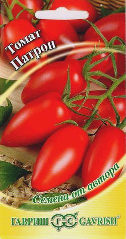 Томат Патрон – среднеранний индетерминантный сорт, период вегетации составляет 115 дней от всходов до созревания плодов. Рекомендуется для культивирования в открытом грунте (особенно в южных регионах), а также в пленочных и остекленных теплицах. Растение характеризуется высокой урожайностью и сильнорослостью, достигая высоты более 2 метров. Плоды цилиндрической или сливовидной формы, плотные, массой 30-50 г. Окраска незрелых плодов светло-зеленая, зрелых – красная. Отмечается отличные вкусовые качества как в свежем виде, так и в консервации. Сорт устойчив к растрескиванию.