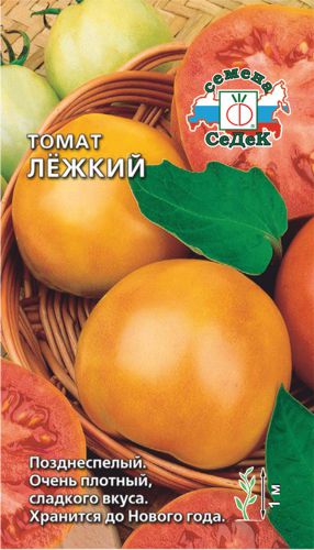 Томат «Лёжкий», позднеспелый сорт (115-120 дней от всходов до созревания)‚ предназначенный для выращивания в открытом грунте и под пленочными укрытиями. Растение кустистое‚ высотой от 0‚7 до 1 метра (в теплице до 1‚5 м). Характеризуется высокой лежкостью плодов‚ сохраняющих качество до полугода в комнатных условиях. Плоды плотные‚ мясистые‚ с небольшим количеством семян‚ массой 100-300 г‚ формой напоминающей паприку‚ окрашены в красный цвет. Вкус сладковатый с легкой кислинкой. Предназначен для употребления в свежем виде‚ консервирования и переработки на соки и соусы.