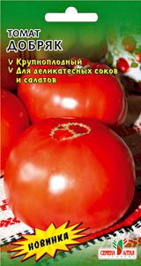 Томат Добряк представляет собой ультраранний (92-102 дня, по некоторым данным 106 дней) сорт, характеризующийся высокой урожайностью и отменными вкусовыми качествами. Культивируется как в открытом грунте, так и в теплицах. Отличается мясистыми, сочными плодами шаровидной или плоскоокруглой формы. Средняя масса плодов составляет 100-110 г, хотя встречаются экземпляры до 700 г. В стадии технической спелости плоды светло-зеленые, в биологической – красные. Толщина стенки плода достигает 10 мм. Сорт демонстрирует устойчивость к вирусу табачной мозаики (ВТМ). Плоды универсальны в применении. употребляются в свежем виде, подходят для заморозки, фаршировки и приготовления различных блюд, например, лечо. Семена томата Добряк часто представлены в ассортименте Агрофирмы Семена Алтая.