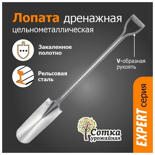 характеристики Лопата садовая штыковая рельсовая сталь "урожайная сотка" дренажная с цельнометаллическим черенком V ручка "Эксперт"