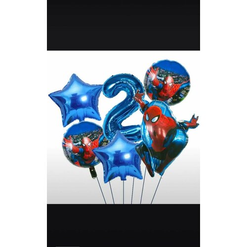 Купить Набор фольгированных воздушных шаров "Человек Паук" с цифрой 2 на день рождение, 6 шт за 599 руб