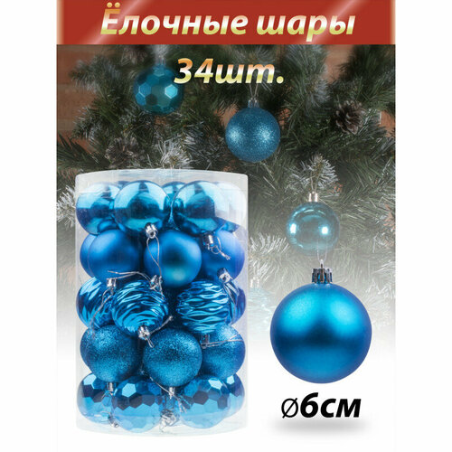 Купить Новогодние игрушки "UltraMarin" 103-NB Синие вспышки 34 шт. Новогодние шары. за 1100 руб