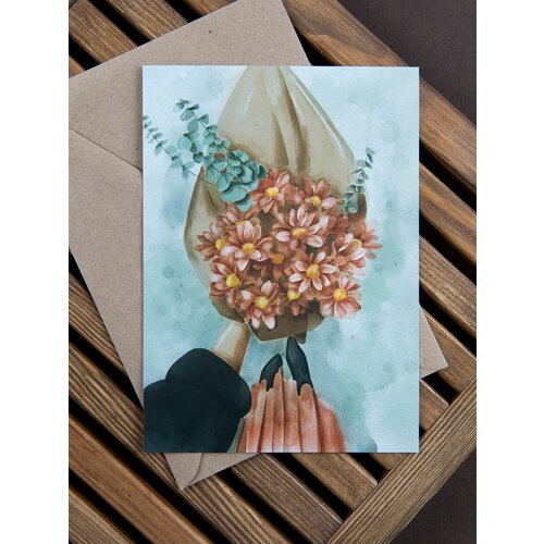 КУПИТЬ Открытка "Букетик хризантем" 10х15 см с крафтовым конвертом за 87 руб