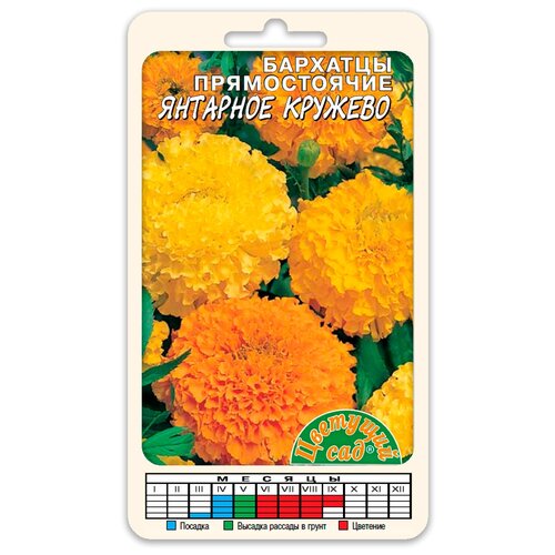 характеристики Семена Цветущий сад "Бархатцы Янтарное Кружево смесь высокорослые", 0,3 г