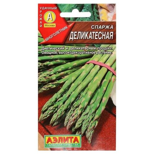 Артикул: 1586-147. Многолетняя овощная и культура. Вес: 4 гр, Посев на рассаду: Апрель - Май, Урожай: Апрель - Май, Размер упаковки: 8 x 0.2 x 15 см, Упаковка: Цветная, Особенности выращивания: Универсальный, Сорт или гибрид: Сорт, Агрономический срок годности, лет: 5. ПосевПосев семян в рассадник рядовым способом с междурядьями 20 см на глубину 2 см Всходы прореживают с шагом 10см. При этом учитывается, что усадка грунта к моменту посадки должна быть не ниже уровня 10-15 см от поверхности почвы. В пищу используют молодые, нежные и сочные побеги, обладающие приятным деликатесным вкусом. Рано весной на третий год проводят высокое окучивание спаржи легким компостом. После срезки побегов кусты сразу снова окучивают. Для сбора побегов растения осторожно освобождают от грунта и срезают побеги, стараясь не повредить корневища и почки. Подходит для консервирования и замораживания. В первой половине сентября следующего за посевом года двухлетнюю рассаду высаживают в подготовленную траншею, раскладывая ее по центру с шагом 60 см и засыпают компостом до уровня почвы. Холодостойкая, долговечная, на одном месте возделывается до 20 лет. Начиная с третьего года жизни, с мая по июнь в течение 1,5 месяцев, спаржа дает урожай. Постоянное посадочное место в идеале представляет собой траншею 30-40 см глубиной, 50 см шириной, и длиной по желанию. Не менее чем за месяц до посадки траншея засыпается рыхлым питательным компостом.