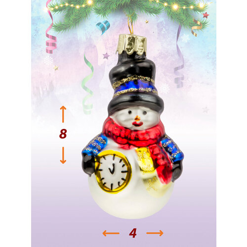 Новогодние игрушки являются неотъемлемой частью праздника, которые создаст атмосферу волшебства и уюта. Они приносят много радости как детям, так и взрослым. Одним из самых интересных видов новогодних украшений на елку являются стеклянные фигурные игрушки. Новогодние украшения для дома выполнены из стекла. Елочные игрушки стеклянные фигурки создадут волшебную атмосферу за праздничным застольем или добавят изюминку в интерьер во время холодных зимних вечеров. У сувенира есть веревочка для подвеса. Елочная игрушка стекло в виде снеговика с часами. Их можно применить как новогодние украшения для интерьера на окна на елку для комнаты для стола. Елочные игрушки набор могут послужить подарком родственникам друзьям коллегам. Игрушка на елку прекрасно украсит символ праздника и порадует гостей насыщенными цветами, красивым мерцанием и узорами.