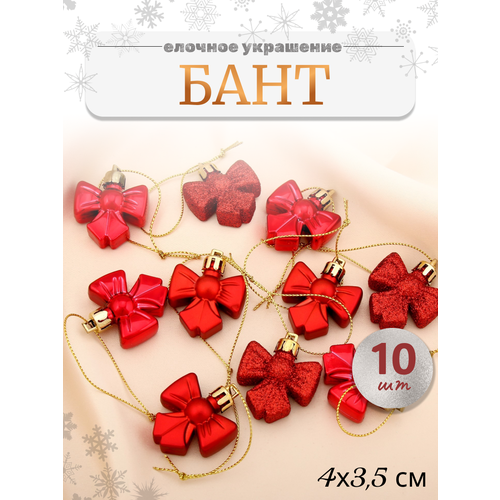 характеристики Украшение ёлочное "Бантик" (набор 10 шт) 4х3,5 см, красный 4192768
