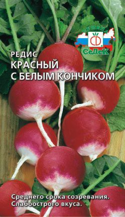 - 29 руб Редис Розово-красный с белым кончиком, семена Аэлита белый пакет 2г