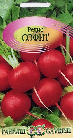 Сорт редиса Софит характеризуется раннеспелостью, формируя корнеплоды за 24-26 суток. Отличительной чертой является устойчивость к стрелкованию и дряблению.