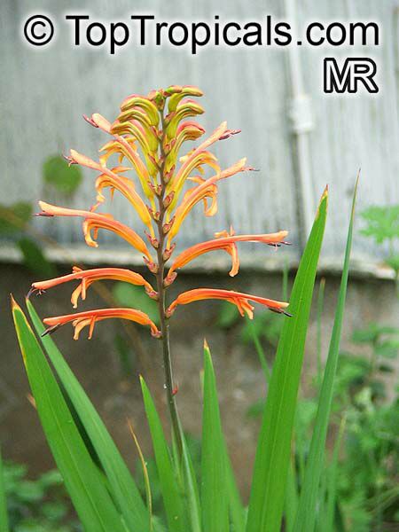 Bahçe çiçekleri Flamalar, Afrika Cornflag, Kobra Zambak, özellikleri ve tanım
