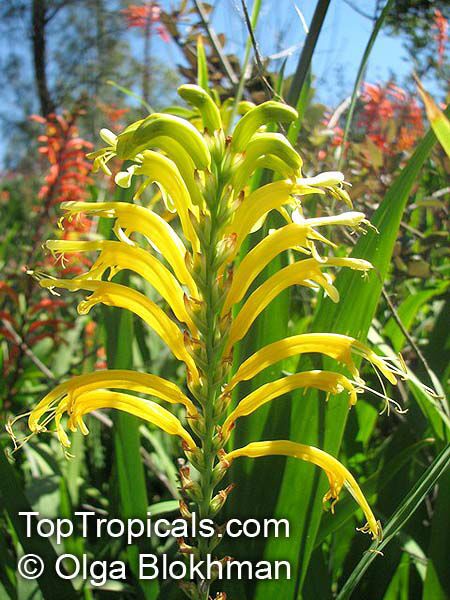 sarı çiçek Flamalar, Afrika Cornflag, Kobra Zambak fotoğraf