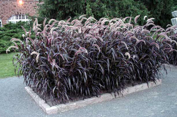 Pennisetum glaucum (сизый) – высокорослый вид (до 2 м) с бронзовато-бордовыми листьями. Представлен различными сортами, отличающимися окраской листьев и соцветий. (Вставить фото Pennisetum glaucum)