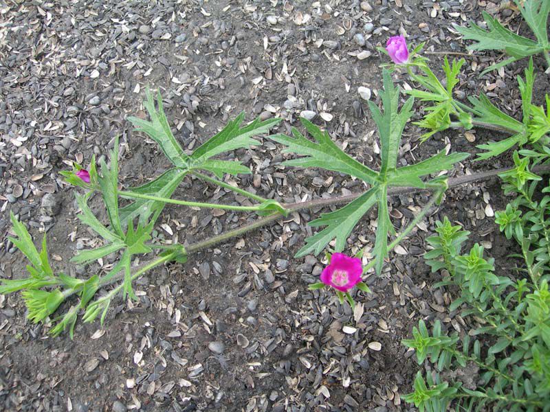 Callirhoe involucrata, или Каллирое покрывальная, представляет собой низкорослый многолетник, образующий плотные, раскидистые кусты высотой 15-30 см и диаметром до 30 см. Листья растения округлые, глубоко рассеченные, пальчато-лопастные, создают эффектный зеленый фон для ярких цветков. Корневая система представлена толстым стержневым корнем, подобным морковке. Стебли растения опушенные, что придает им необычную текстуру.