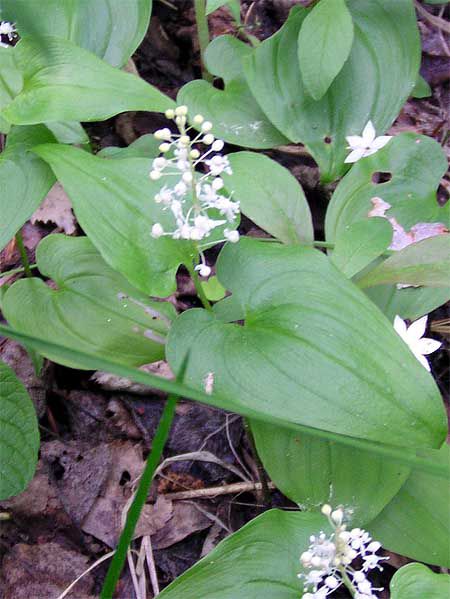 - Maianthemum bifolium (Майник двулистный). широко распространён в лесах Европы и Азии, характеризуется двумя сердцевидно-яйцевидными листьями на стебле и небольшими белыми цветками, собранными в кисть. Имеет высокую зимостойкость.